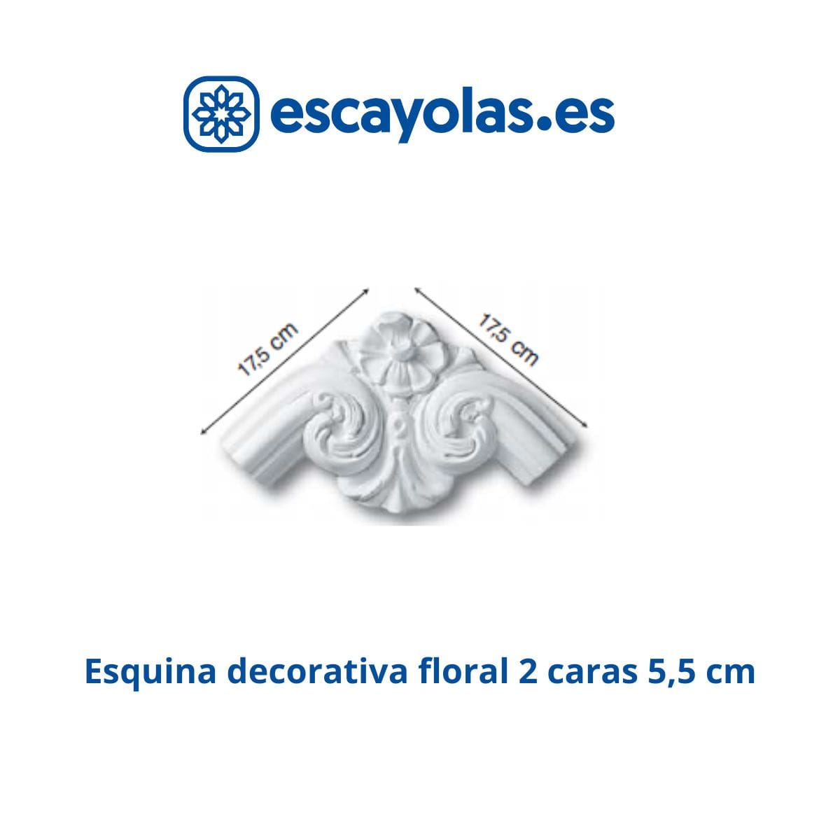 Baquetón de escayola 5,5 cm × 1,05 m con esquinas compatibles. Tres modelos de esquina disponibles: lisa, floral y curva. Ideal para techos y paredes.