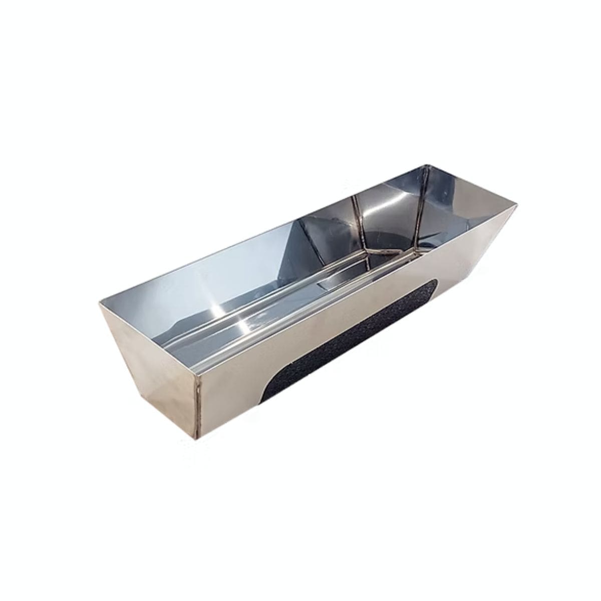 Batea de acero inoxidable con base antideslizante, diseñada para trabajos de drywall y encintado de placa de yeso. Ideal como porta pastas durante la aplicación de cintas y acabados, ofreciendo estabilidad, limpieza y resistencia en uso profesional intensivo.