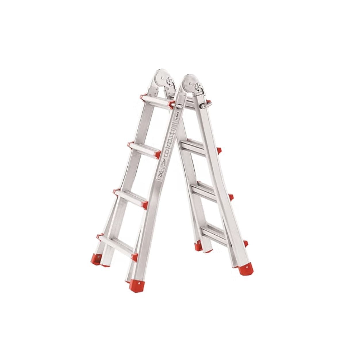 Es una escalera articulada que puede colocarse en distintas posiciones para adaptarse a diferentes trabajos y alturas.