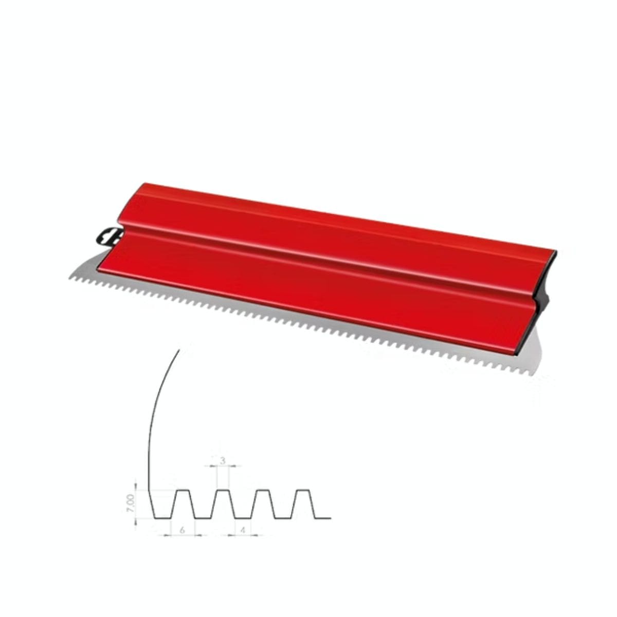 Espátula dentada diseñada para la aplicación de adhesivos en sistemas SATE (Aislamiento Térmico por el Exterior). Su perfil dentado garantiza una distribución uniforme del material, mejorando el agarre del aislamiento y facilitando el trabajo profesional.