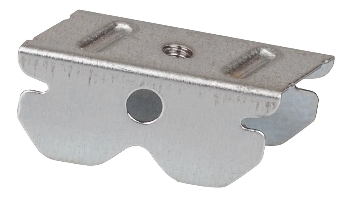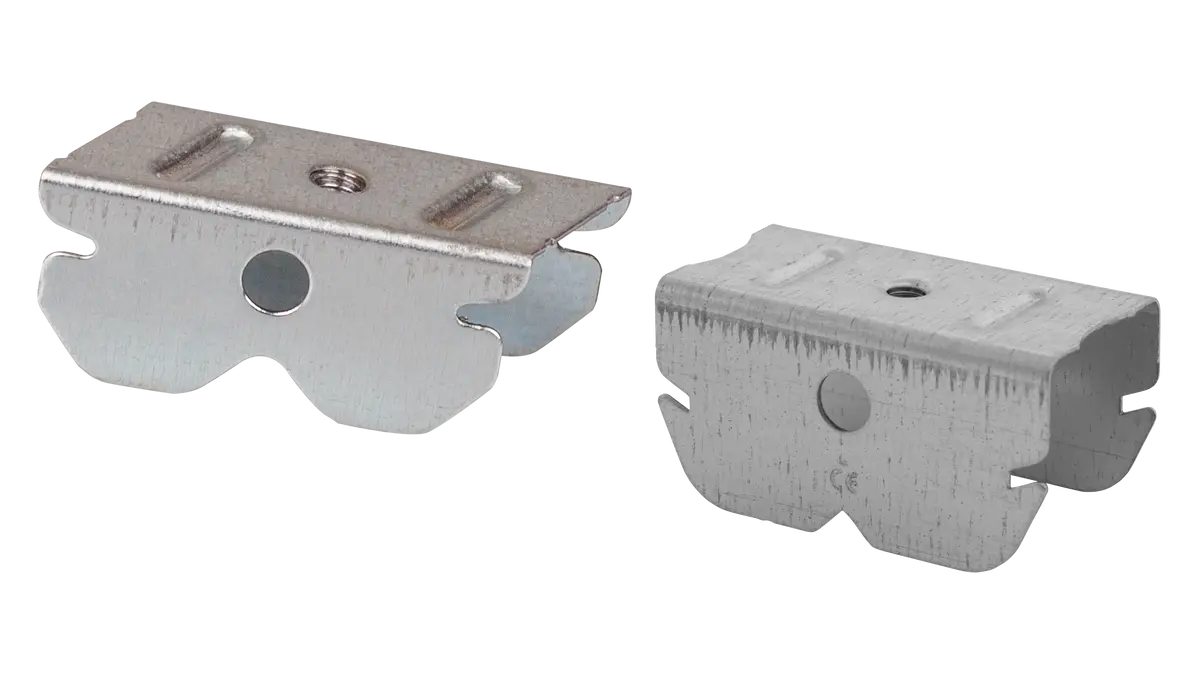 Horquilla de cuelgue con rosca M6 en acero galvanizado. Apta para techos continuos con perfiles de 47 y 60 mm. Clase A1 de reacción al fuego.