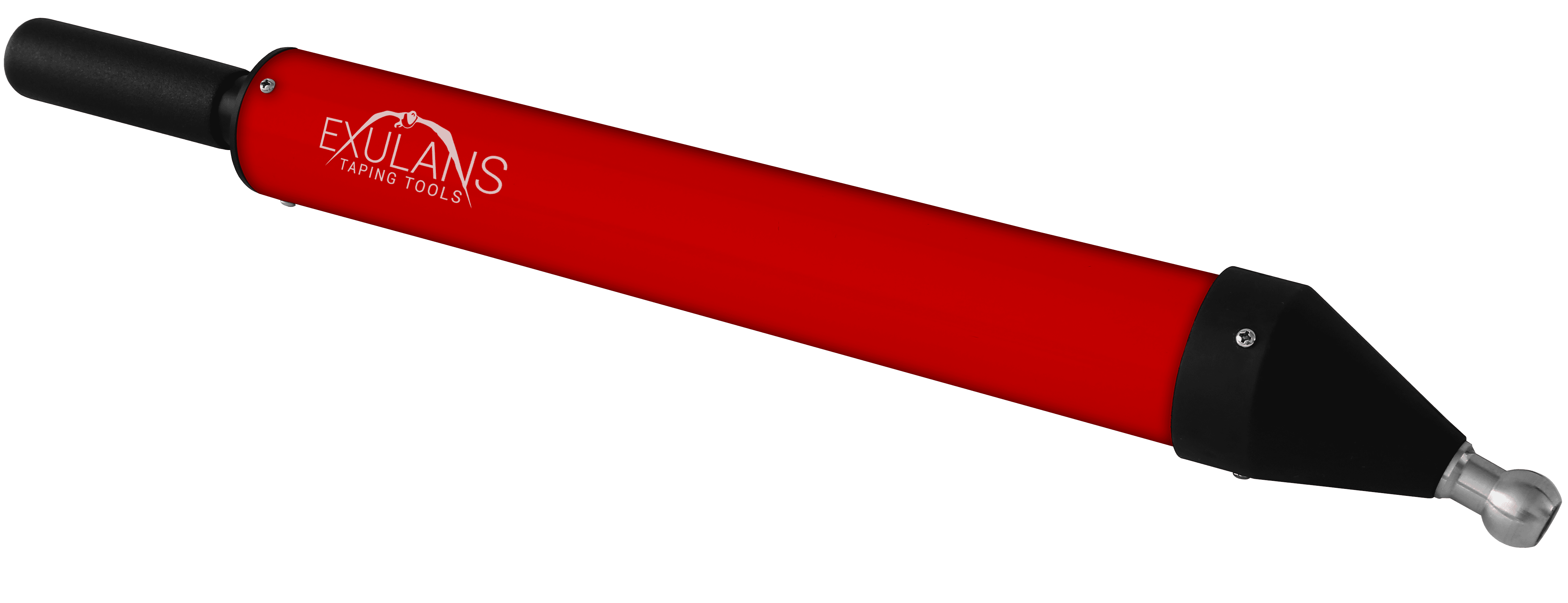 Maleta profesional Exulans nº 2 con herramientas semiautomáticas para el acabado de juntas de pladur. Incluye aplicadores, cabezales, mangos, espátulas y rodillos para un acabado rápido, uniforme y sin esfuerzo.