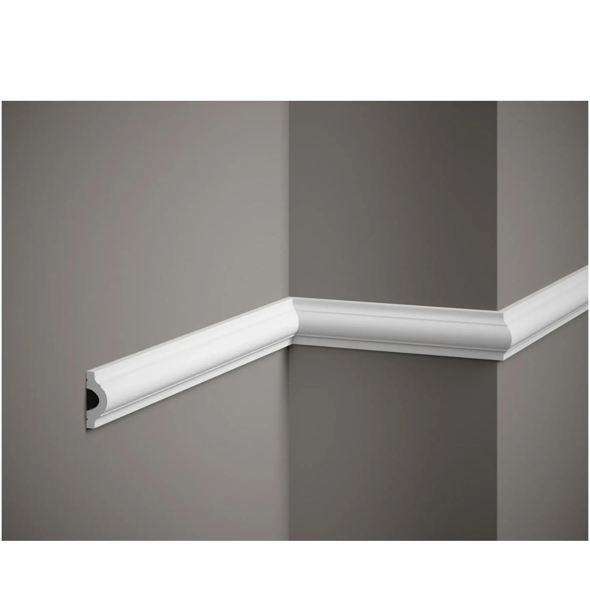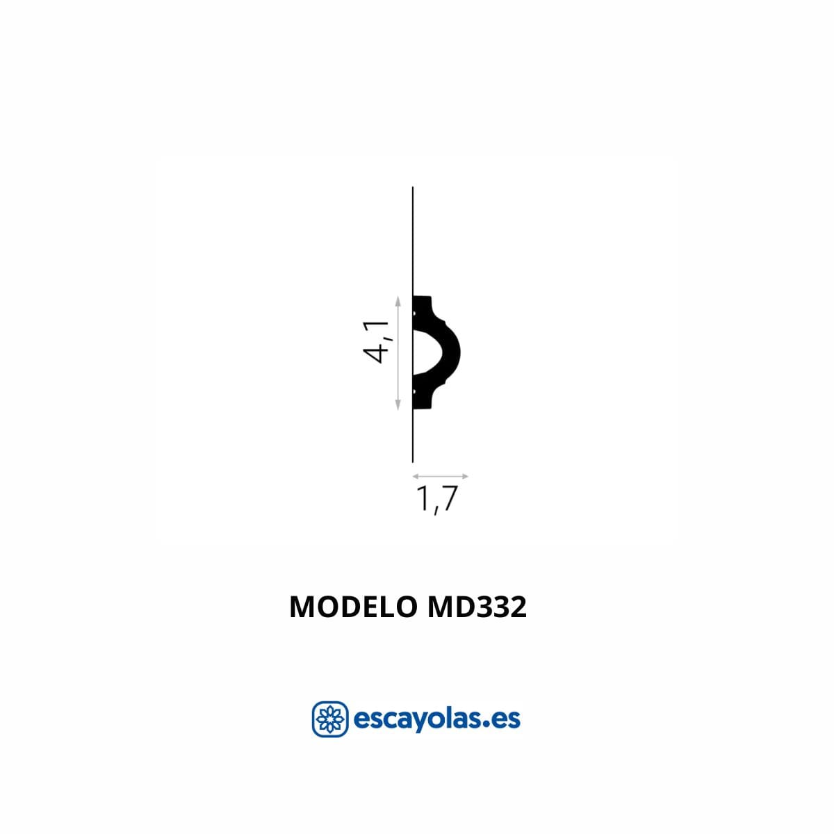 Moldura de pared decorativa moderna MD332 de 2 metros en alta densidad. Perfil con líneas suaves ideal para crear panelados elegantes con un acabado limpio y actual.