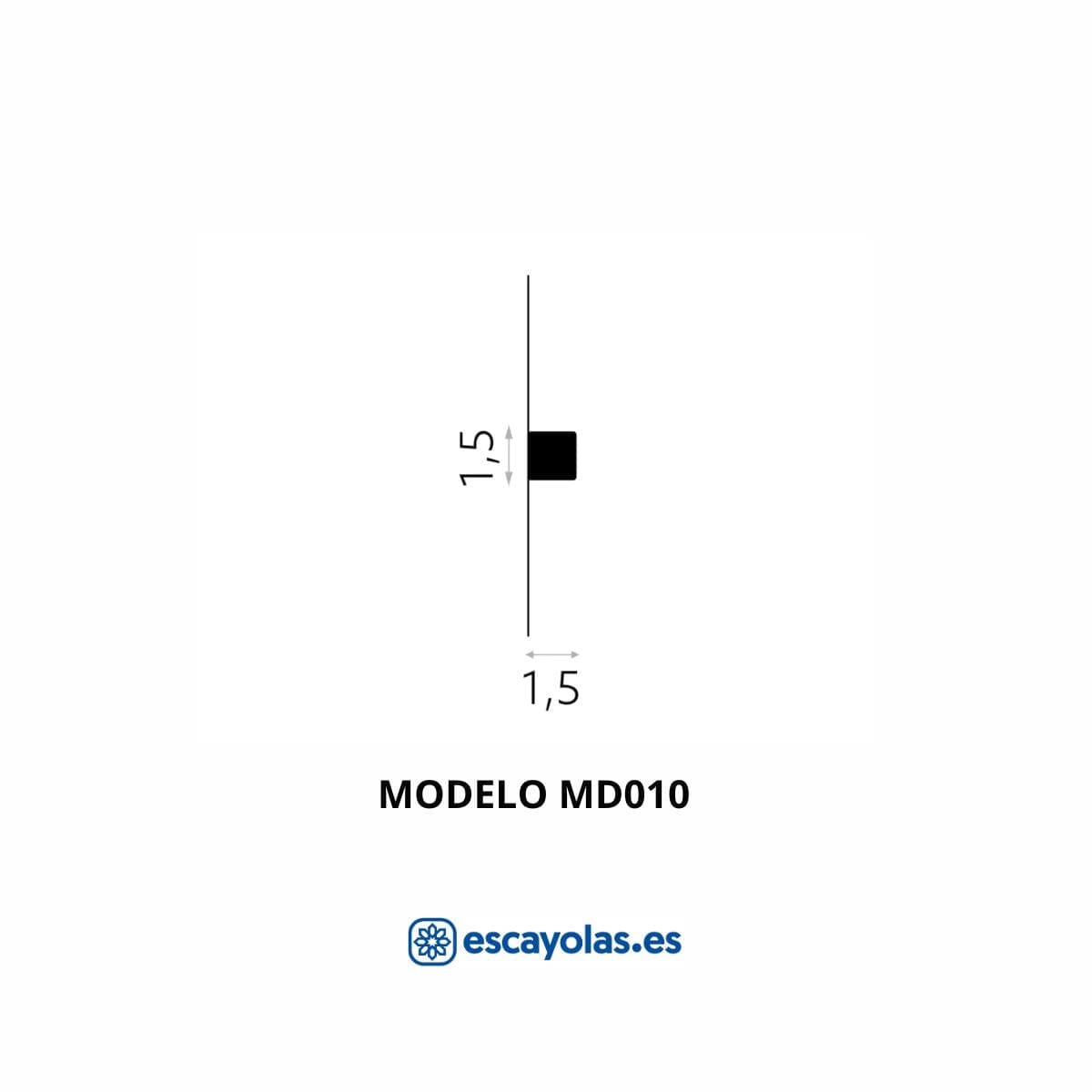 La moldura MD010 es un perfil cuadrado de pequeño formato diseñado para crear composiciones decorativas en pared, como panelados, marcos o divisiones.