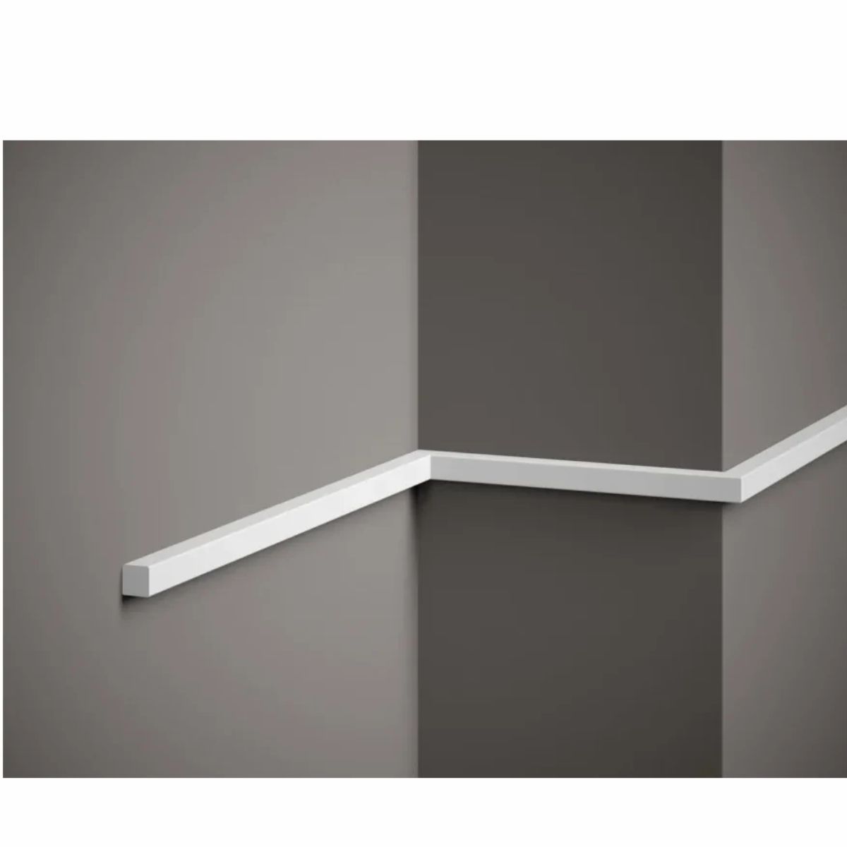 Moldura de pared tipo taco fino MD010 de 2 metros en alta densidad. Perfil cuadrado ideal para crear panelados decorativos y marcos en pared con un acabado limpio y minimalista.