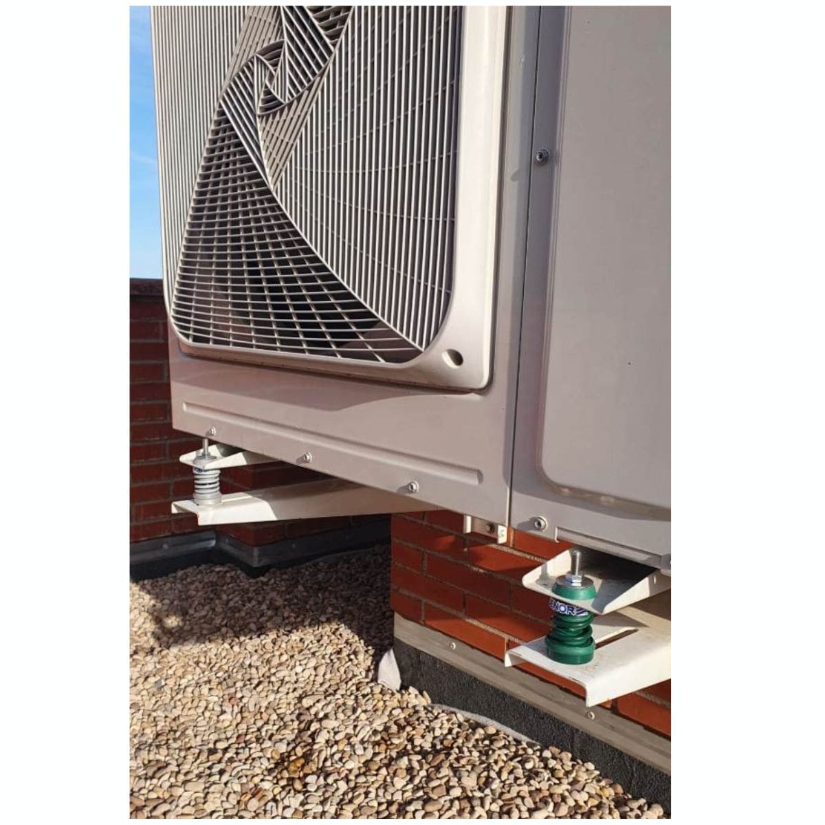 Se coloca entre la unidad split y su soporte o estructura de anclaje, desacoplando las vibraciones del equipo respecto a la construcción.